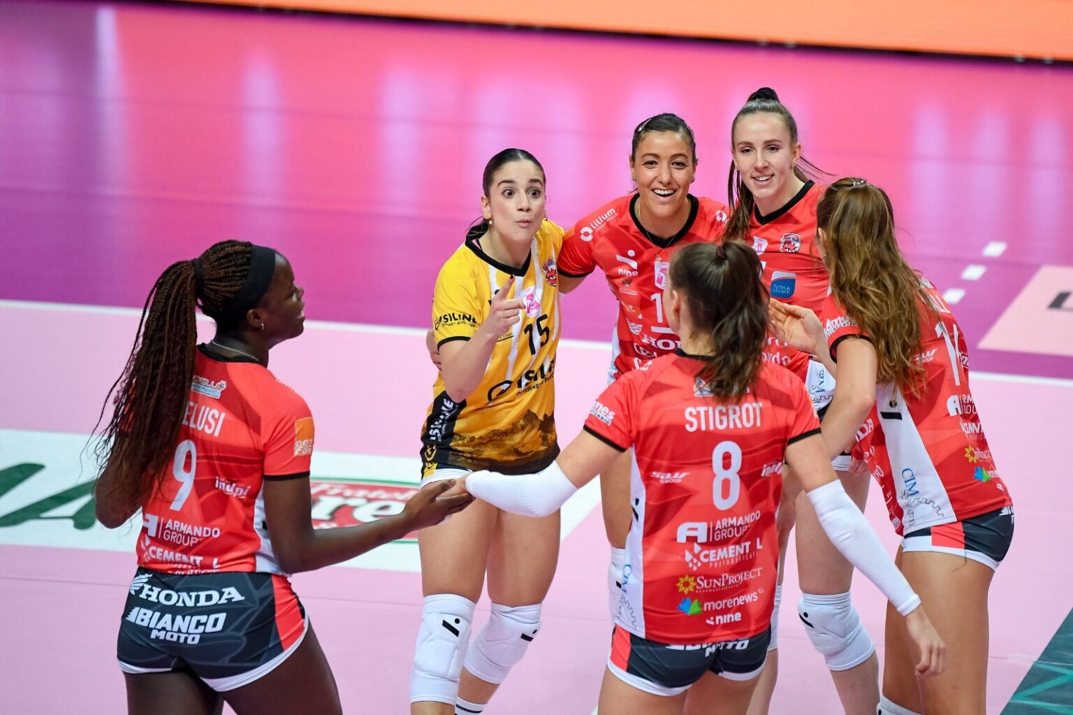 HONDA OLIVERO S.BERNARDO CUNEO: Signorile 1, Adelusi 25, Haak 13 , Stigrot 2, Sylves 6, Hall, Scognamillo (L), Tanase 1, Scola, Kubik 3 , Molinaro 5, Enweonwu, Ferrario ne, Thior ne. All. Bellano, vice all. Aime.